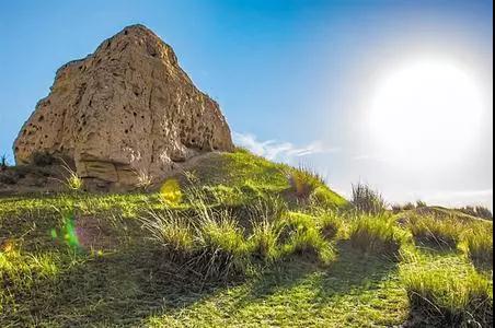是蒼翠巍峨的焉支山,兩山相峙恰如咽喉,定羌廟處于咽喉要道扼控甘涼。據(jù)清道光十五年《山丹縣志》載:明隆慶五年重修定羌廟驛,萬(wàn)歷三十八年平羌將軍張臣重建并懸匾?,F(xiàn)遺址內(nèi)有漢灰陶殘片,有古井、房址和列障遺跡。從這些史料來(lái)看,定羌廟鋪從漢代至清代都是兵家防守的重要關(guān)隘。清代詩(shī)人謝歷途經(jīng)定羌廟有詩(shī)云:“定羌古戍獨(dú)登樓,臨眺無(wú)端悵遠(yuǎn)游,煙雨一天憑對(duì)酒,英雄千古幾封侯?塞鴻飄渺長(zhǎng)空遠(yuǎn),羌管悠揚(yáng)野草秋,為問(wèn)漢家教射客,到今何用姓名留。”