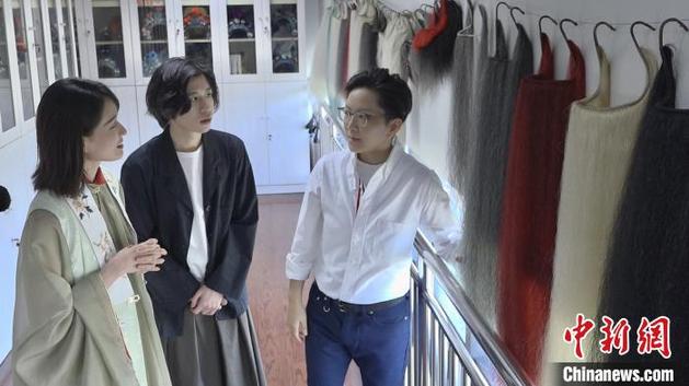 京劇名家王珮瑜帶領(lǐng)兩位主播走進(jìn)上海京劇院。 康玉湛 攝