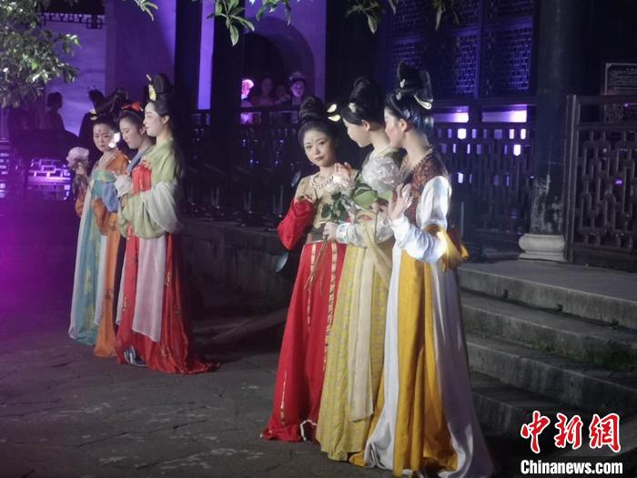 中新網(wǎng)杭州6月9日電(童笑雨)實(shí)景園林中還原杜麗娘游園驚夢(mèng)場(chǎng)景,羅漢堂前身著傳統(tǒng)服飾的年輕人坐在蒲團(tuán)上行飛花令,曼妙身姿在假山上演繹《采薇》獨(dú)舞……這是專(zhuān)屬于浙江省博物館的“奇妙夜”。