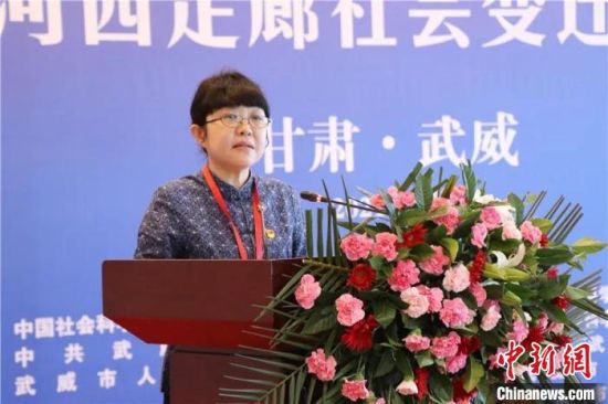 11日,“明清時(shí)期河西走廊社會(huì)變遷”學(xué)術(shù)研討會(huì)舉辦。圖為中國(guó)社科院古代史研究所黨委書記趙笑潔講話。 武威市新聞傳媒集團(tuán)供圖