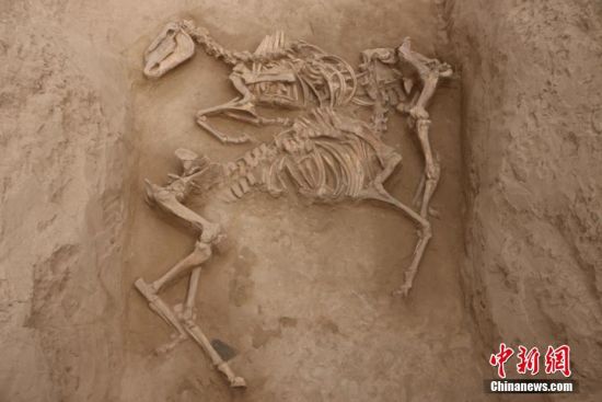 12月14日,甘肅省文物局發(fā)布該省武威地區(qū)唐代吐谷渾王族墓葬群最新考古研究成果。圖為長嶺M1墓道殉馬。 中新社發(fā) 甘肅省文物局 供圖