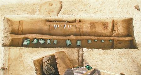 禮縣大堡子山遺址秦代銅編鐘發(fā)掘現(xiàn)場