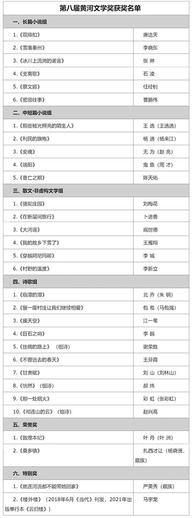 原標(biāo)題:第八屆黃河文學(xué)獎(jiǎng) 獲獎(jiǎng)名單公示