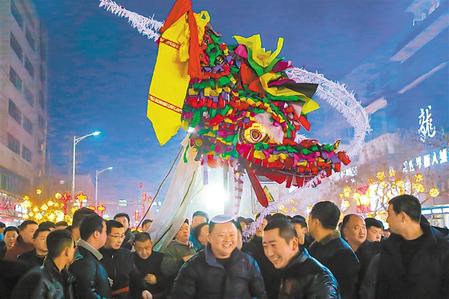 西和縣傳統(tǒng)“老龍”社火耍起來。新甘肅·甘肅日報通訊員 張春年