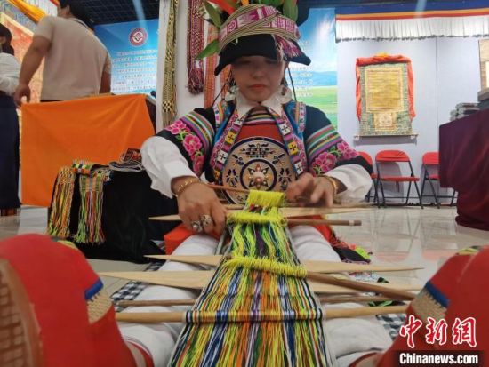 中新網(wǎng)甘肅張掖6月8日電 (閆姣)腳蹬紡織板,手持木梭子,甘肅甘南藏族自治州舟曲縣藏族姑娘全庸卓瑪坐在地上,展示省級(jí)非遺織錦帶,藏族婦女用其束腰、扎靴。她說(shuō),這項(xiàng)技藝后繼乏人,希望通過(guò)這種“走出去”的活動(dòng),讓更多人了解這一獨(dú)特文化。