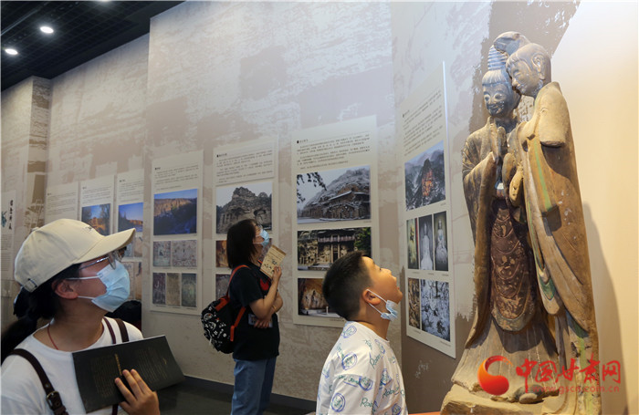 布展者表示,“覺”是大智慧生,是一種至善的境界,生出一切正向之心,導(dǎo)化出純粹不染的行為。“色”是感知所在,是最善于表達(dá)情感的藝術(shù)語(yǔ)言,訴說(shuō)著人間至美的理想。用“覺色”來(lái)展示敦煌,希望帶給參觀者更多啟發(fā)。