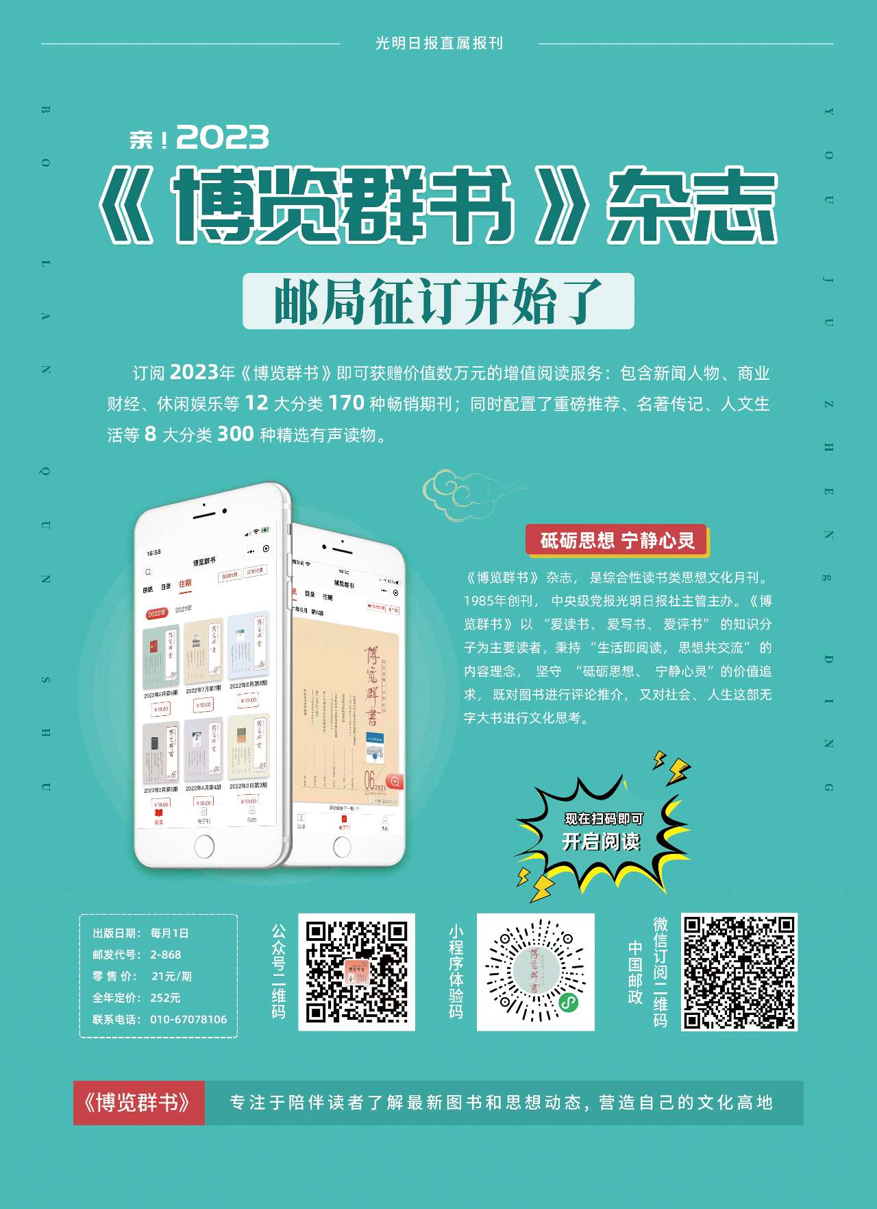(由北京市報(bào)刊發(fā)行局青年團(tuán)隊(duì)設(shè)計(jì)的《博覽群書》2023年征訂廣告,點(diǎn)擊最后一個(gè)二維碼即可完成訂閱)