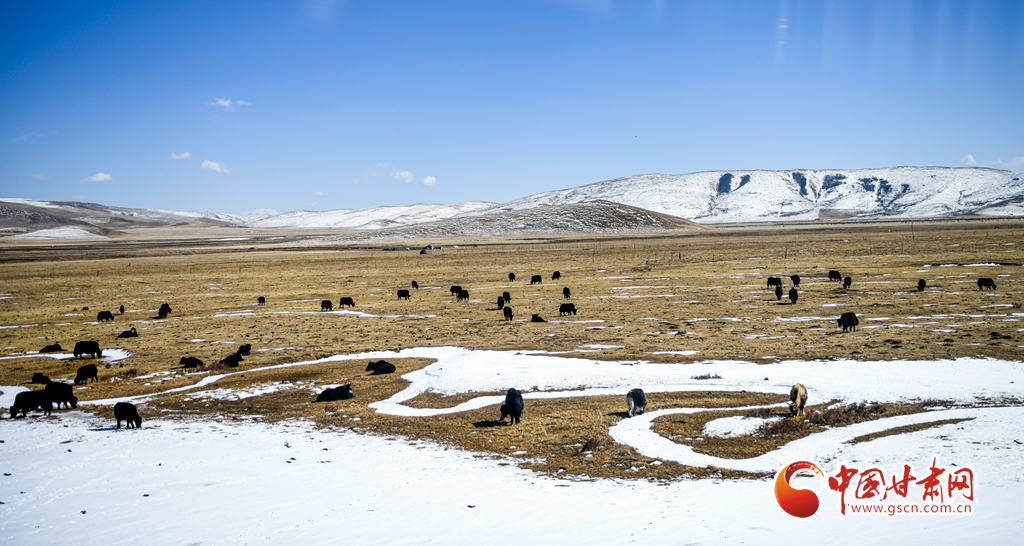 3月8日,甘肅省甘南藏族自治州碌曲縣境內(nèi)再次出現(xiàn)降雪天氣,雪后初霽,大地銀裝素裹,山間云霧繚繞,牛羊成群結(jié)隊(duì)在雪原中奔跑、覓食,構(gòu)成一幅和諧的生態(tài)畫(huà)卷。