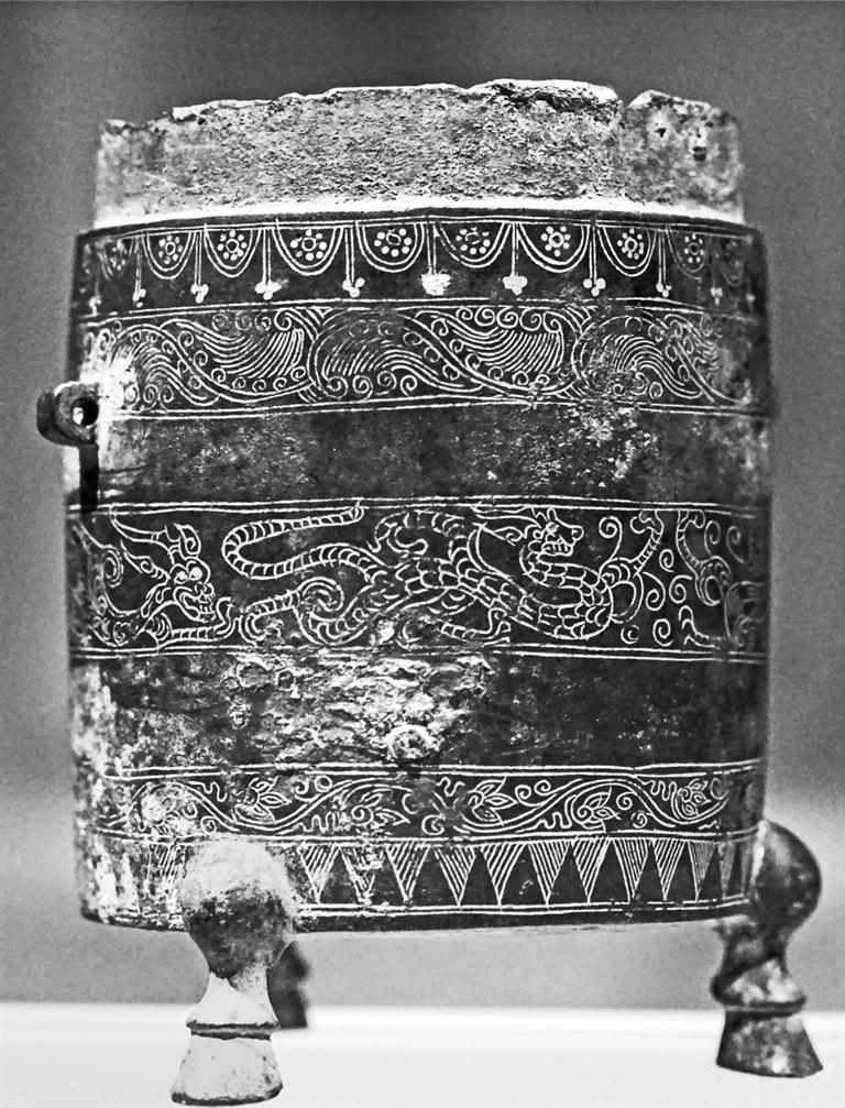 這件金錯泥筩,是目前發(fā)現(xiàn)的唯一一件可以確定的、與前涼張氏王族有關(guān)的宮廷用器。征集于西安,可能是公元376年,前涼末主張?zhí)戾a投降前秦后前往長安時帶去的。