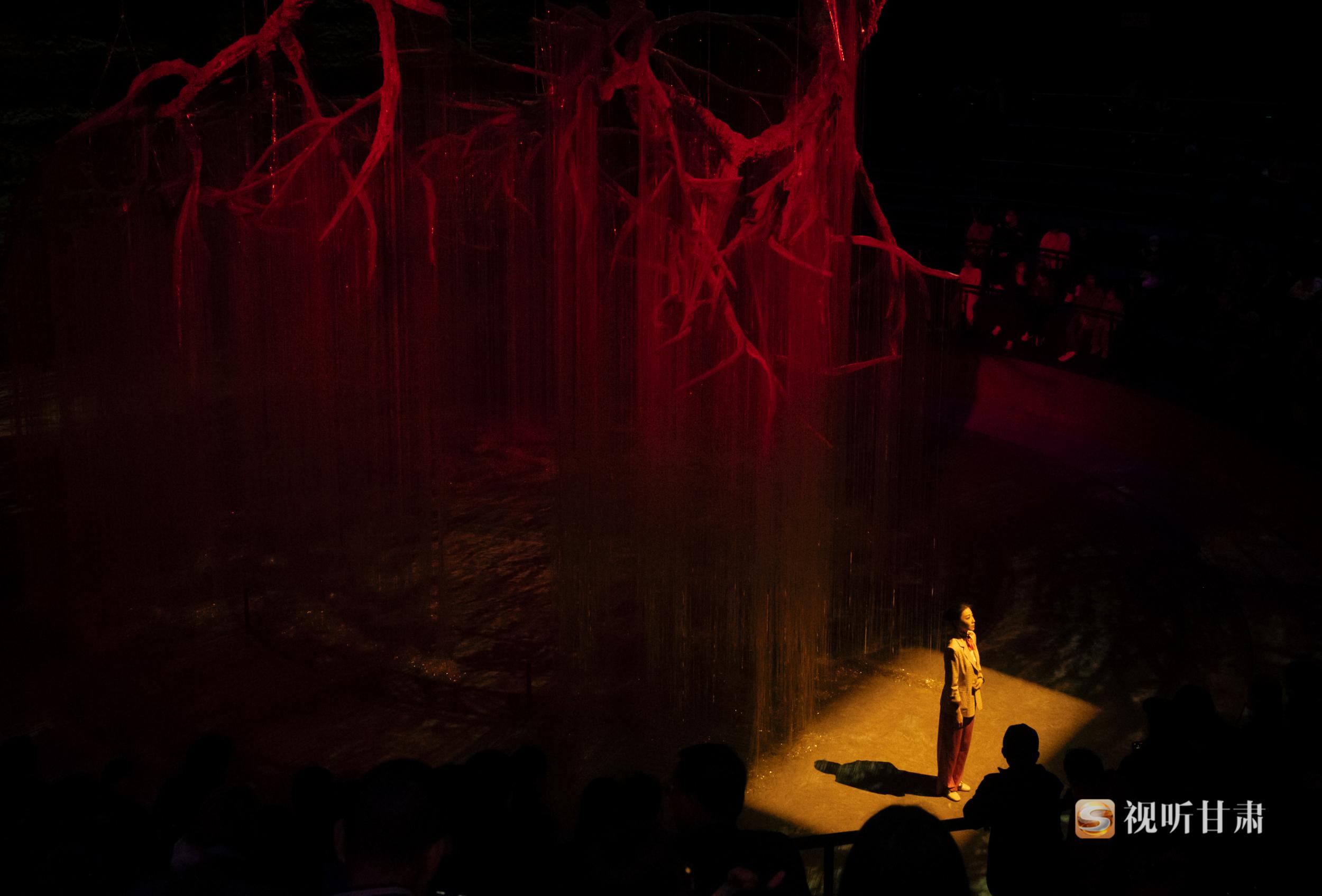 《天水千古秀》劇場(chǎng)內(nèi)部設(shè)置了罕見(jiàn)的,超大型聯(lián)動(dòng)舞臺(tái)機(jī)械裝置、3D影像裝置、移動(dòng)巨幕裝置、首創(chuàng)了許多特技效果,引領(lǐng)觀眾進(jìn)入壯觀瑰麗的幻境空間。不同于以往坐在觀眾席的觀演體驗(yàn),《天水千古秀》的觀眾是以邊走邊看的形式觀看演出,通過(guò)上、下兩條情景通道,在多維度的劇場(chǎng)空間內(nèi)與歷史人物互動(dòng),感受身臨其境的奇妙體驗(yàn)。演出采用邊行走邊觀看的形式,使觀眾感受到的不僅限于平面,而是在多維度表演空間內(nèi)與歷史人物互動(dòng),感受身臨其境的奇妙體驗(yàn),運(yùn)用現(xiàn)代的思考方式探索天水的遠(yuǎn)古世界,來(lái)深入探索伏羲哲學(xué)“陰陽(yáng)”世界觀,以“沉浸式”的方式讓觀眾更加直觀的感受歷史、貼近歷史。