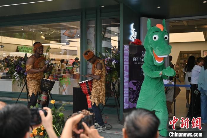 6月19日,甘肅省博物館藝術(shù)生活館在甘肅蘭州開館。該館是甘肅省博物館打造的一處復(fù)合型高價(jià)值文化空間,融合了咖啡、烘焙、展覽、藝術(shù)書店、文創(chuàng)銷售等多樣化業(yè)態(tài)。圖為綠馬真人玩偶(右一)熱舞吸引游人。中新社記者 李亞龍 攝