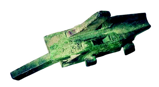 出土的青銅弩機共三件,制作精巧,外觀平整光潔。大件長14.5厘米,寬12.8厘米,重量為1031.9克。中件長14.9厘米,寬7.4厘米,重量為540克。小件長10厘米,寬4厘米,重量為11克。這三件弩機除了小件稍有點殘缺外,其余兩件基本完整。三件弩機造型沉穩(wěn),小巧玲瓏,且機廓都由青銅鑄造,這在已出土的弓箭類文物中比較罕見。經(jīng)過專家鑒定,這是三國時期魏蜀征戰(zhàn)天水時的遺留文物。