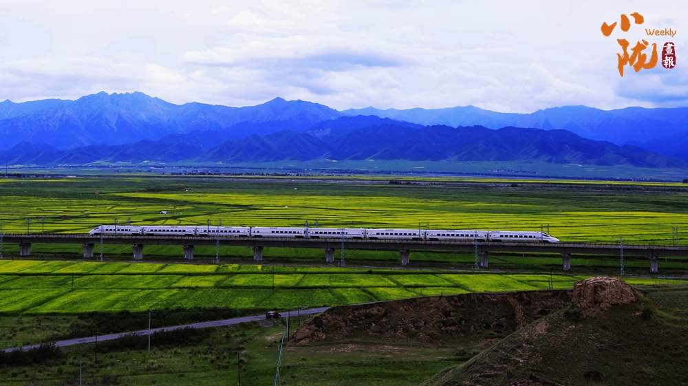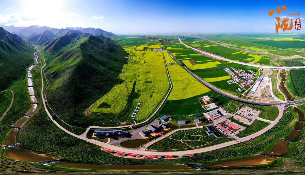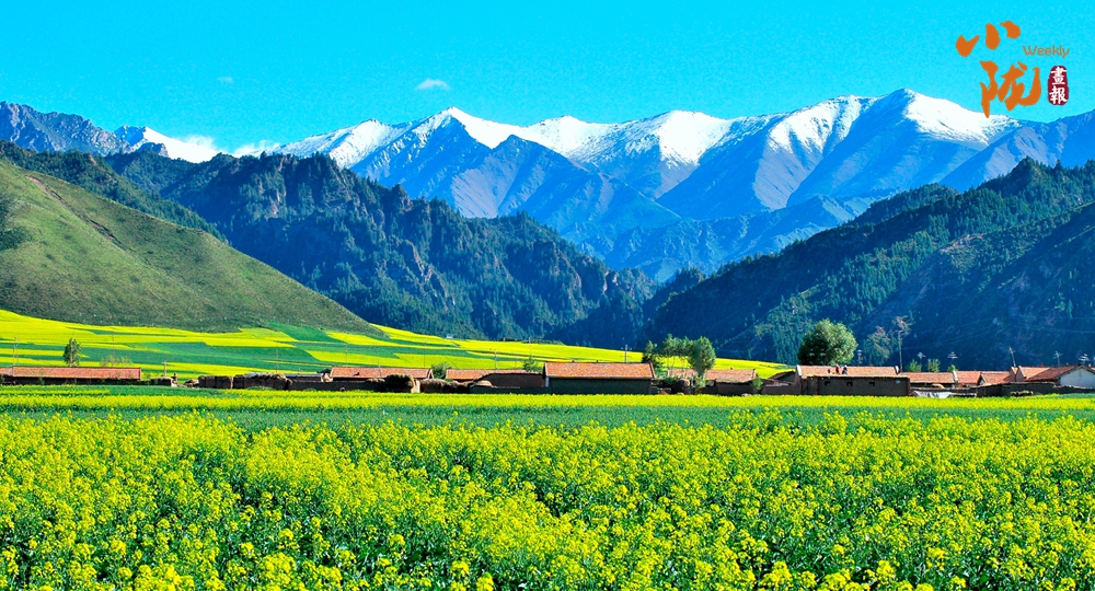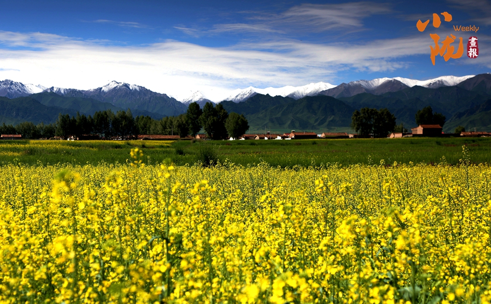 在藍(lán)天白云和祁連雪峰的映襯下,那盛開(kāi)的油菜花、點(diǎn)綴在花海中的村莊人家,勾勒出一幅優(yōu)美的田園風(fēng)光畫(huà)卷。
