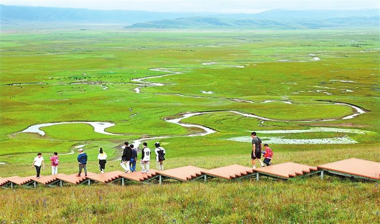 游客在瑪曲縣阿萬倉黃河濕地公園游玩。新甘肅·甘肅日報記者 田蹊