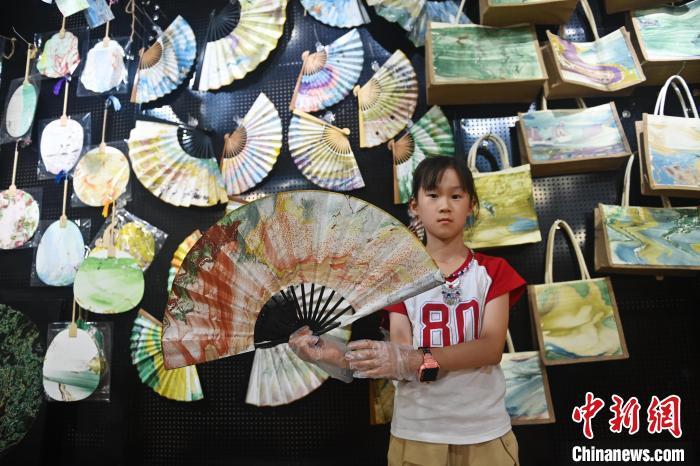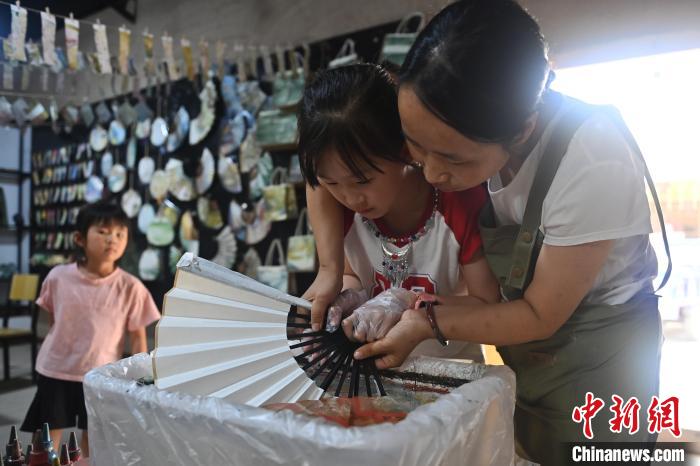 8月20日,甘肅敦煌莫高里工匠村內(nèi),學(xué)員展示研學(xué)成果。工匠村開設(shè)了泥板畫、彩繪、雕塑制作、剪紙、農(nóng)耕體驗(yàn)等課程,現(xiàn)已發(fā)展成為一個(gè)集敦煌文化講堂、壁畫書法研習(xí)、美術(shù)設(shè)計(jì)、彩塑制作教學(xué)、篆刻藝術(shù)、傳統(tǒng)釀酒體驗(yàn)、農(nóng)業(yè)產(chǎn)業(yè)發(fā)展等于一體的多功能實(shí)訓(xùn)基地。中新社記者 李亞龍 攝