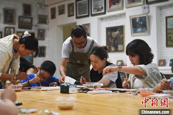 8月20日,甘肅敦煌莫高里工匠村內(nèi),學(xué)員體驗(yàn)敦煌文化研學(xué)課程。工匠村開設(shè)了泥板畫、彩繪、雕塑制作、剪紙、農(nóng)耕體驗(yàn)等課程,現(xiàn)已發(fā)展成為一個(gè)集敦煌文化講堂、壁畫書法研習(xí)、美術(shù)設(shè)計(jì)、彩塑制作教學(xué)、篆刻藝術(shù)、傳統(tǒng)釀酒體驗(yàn)、農(nóng)業(yè)產(chǎn)業(yè)發(fā)展等于一體的多功能實(shí)訓(xùn)基地。中新社記者 李亞龍 攝