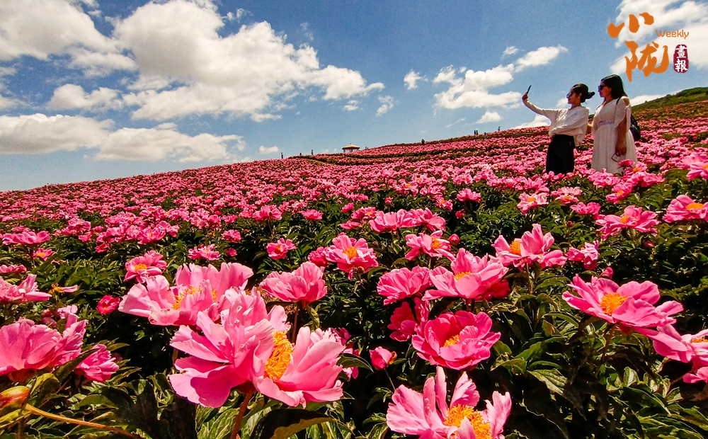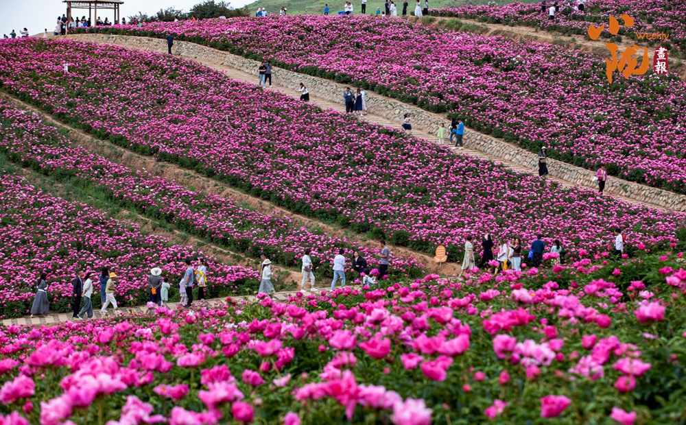 芍藥花靜靜地綻放,風(fēng)姿綽約,粉紅色的花海如給大地披上了艷麗的衣裳,徜徉其中,俯身輕聞花香,讓人心曠神怡。