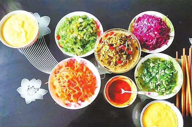 百人百心病,百人百口味?,F(xiàn)在的人吃馓飯,對(duì)菜品的要求越來越高了,除了酸菜,人們大多還會(huì)調(diào)一些涼菜,或炒一些菜,蘿卜的,肉丁的,山野菜的,虎皮辣子的,滿滿地?cái)[上一桌子,如錦上添花,令人食欲大增。