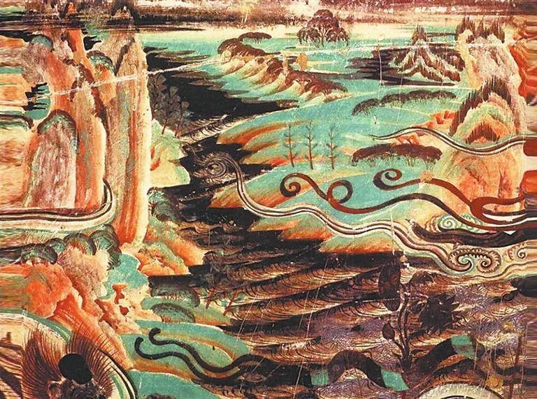 莫高窟第172窟 青綠山水畫(huà)(局部) 盛唐