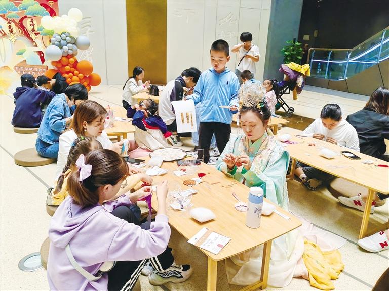 活動現(xiàn)場,甘肅簡牘博物館根據(jù)中秋嫦娥的故事,結(jié)合館藏文物“兔子木簡”和簡牘博物館文創(chuàng)玩偶“簡龍”的原型,分別設(shè)置了縫制月餅香囊、繪兔簡、尋找神獸三道關(guān)卡,通過完成任務(wù)獲得“仙丹碎片”,最終點(diǎn)亮宮燈,幫助嫦娥重回廣寒宮。新穎獨(dú)特的活動,吸引了不少市民參加。
