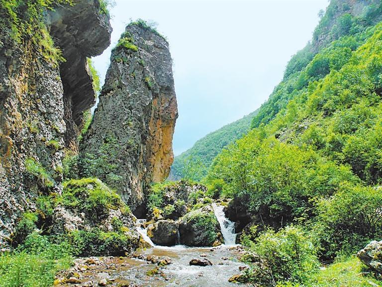 雙石門獨(dú)特的景觀,與它所屬的山脈是分不開的。在雙石門峽谷深處,群峰相連,最高峰是被譽(yù)為“撐天銀碑”的露骨山,主峰海拔3941米,是臨近數(shù)縣海拔最高的山峰,同時也是漳縣、渭源、卓尼三縣的交界處。