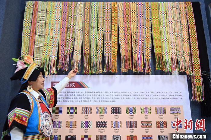 9月26日,甘肅省甘南藏族自治州舟曲縣,當(dāng)?shù)夭刈鍕D女展示紡織好的錦帶。錦帶是舟曲藏族婦女用以束腰、扎靴、攏發(fā)乃至點(diǎn)綴服飾的花帶子,艷麗多彩、圖案優(yōu)美。每逢吉慶節(jié)日,藏族婦女穿戴的華麗盛裝就需要少則五、六條,多則十幾條寬窄長短相宜的錦帶來裝飾。據(jù)介紹,藏族織錦帶技藝歷史悠久,一千多年以前,古羌族和吐蕃已有了較發(fā)達(dá)的手工編織技術(shù),在艱難的生活條件下對服飾等生活用品除實(shí)用功能之外,已經(jīng)有了強(qiáng)烈的審美追求,是研究舟曲羌藏文化的“活化石”。中新社記者 九美旦增 攝