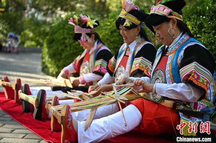 9月26日,甘肅省甘南藏族自治州舟曲縣,當(dāng)?shù)夭刈鍕D女紡織錦帶。錦帶是舟曲藏族婦女用以束腰、扎靴、攏發(fā)乃至點(diǎn)綴服飾的花帶子,艷麗多彩、圖案優(yōu)美。每逢吉慶節(jié)日,藏族婦女穿戴的華麗盛裝就需要少則五、六條,多則十幾條寬窄長短相宜的錦帶來裝飾。據(jù)介紹,藏族織錦帶技藝歷史悠久,一千多年以前,古羌族和吐蕃已有了較發(fā)達(dá)的手工編織技術(shù),在艱難的生活條件下對服飾等生活用品除實(shí)用功能之外,已經(jīng)有了強(qiáng)烈的審美追求,是研究舟曲羌藏文化的“活化石”。中新社記者 九美旦增 攝