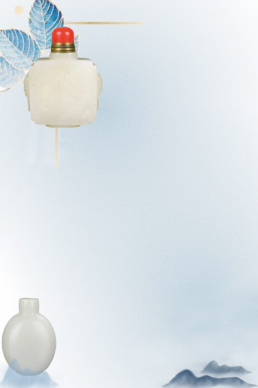 白玉鼻煙壺因獨(dú)特的材質(zhì),貫穿5000多年的玉文化,占有極其重要的位置。白玉鼻煙壺雖然尺寸小巧,卻兼具傳統(tǒng)藝術(shù)的全部技藝:材質(zhì)、工藝、造型、紋飾、繪畫、書法、雕刻等集于一身,融掏膛、陰刻、浮雕、篆刻等玉雕技法,制作極精妙,在清代白玉鼻煙壺當(dāng)中占據(jù)極為重要的位置,于方寸之間,見乾坤之闊。乾隆時(shí)期,和田玉源源不斷地運(yùn)進(jìn)皇宮,翡翠也大量使用,為白玉鼻煙壺的制作提供了極優(yōu)秀的材料,特別是小而圓潤的籽玉,溫潤細(xì)膩,潔白無瑕,正是鼻煙壺的天賜美材。工匠們對材料巧加利用,或因此施藝,琢成天然隨形之物,或巧運(yùn)匠心,將其雕琢成各類應(yīng)景題材,配以詩文,以彰吉祥文雅之意。