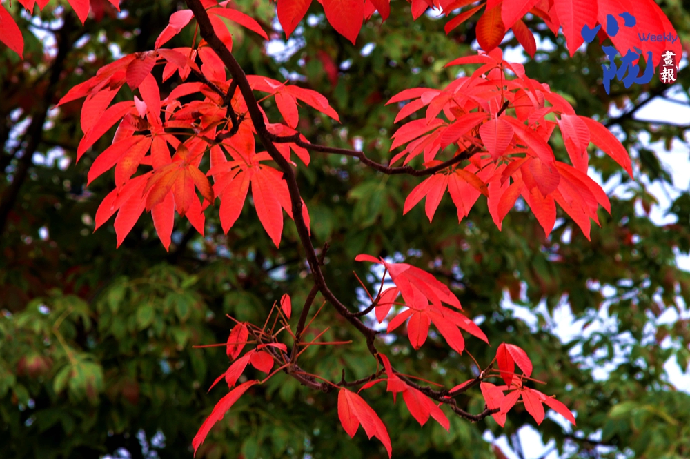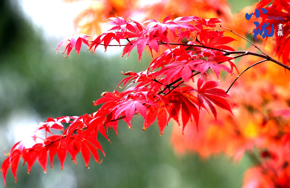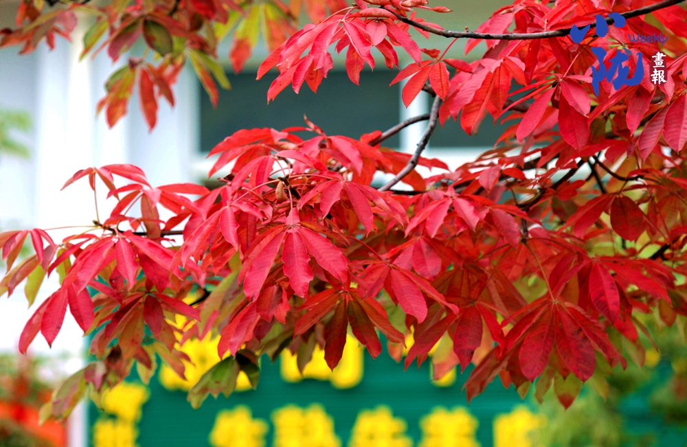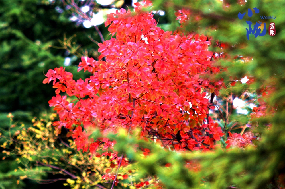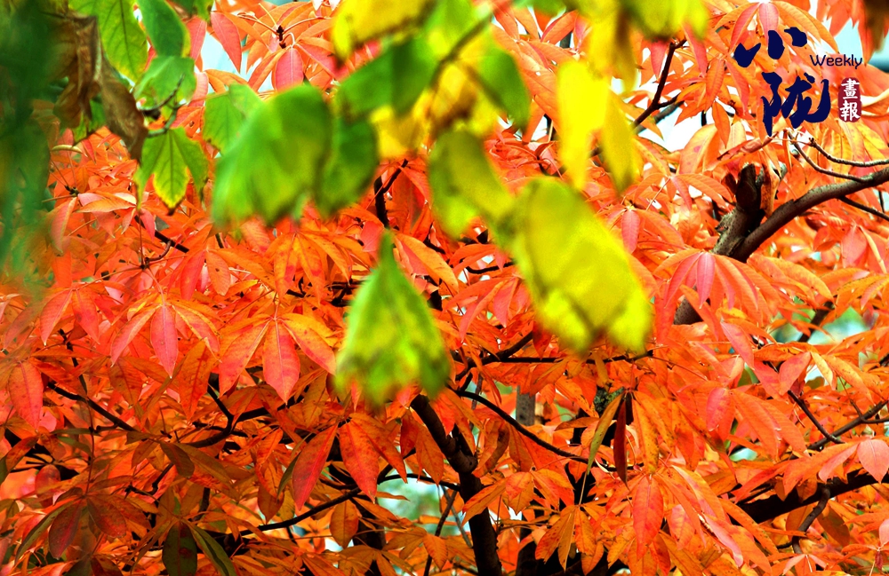 淡淡的秋霜將樹(shù)葉染成綺麗多彩的鮮紅和金黃,與綠葉共舞,層層疊疊,在凋零中展現(xiàn)生命的堅(jiān)韌。
