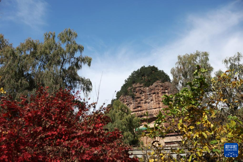 這是11月2日拍攝的麥積山石窟秋景。新華社記者 陳斌 攝