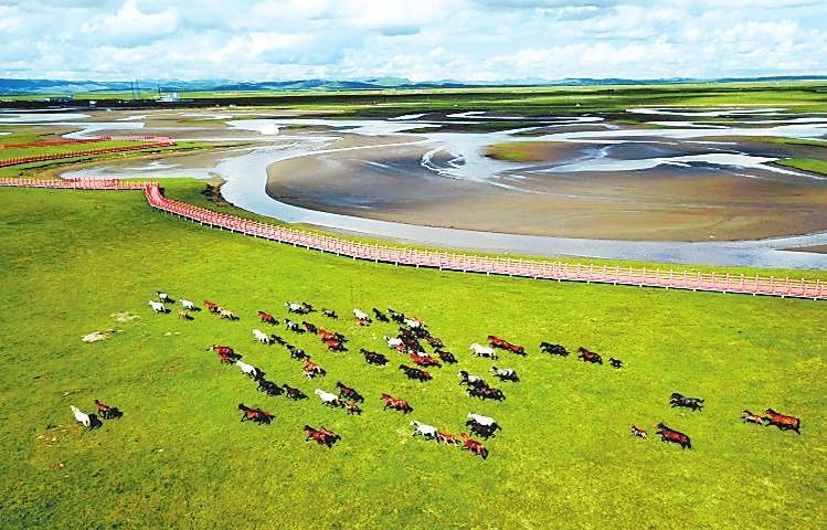 原標(biāo)題:黃河首曲 一灣碧水潤草原
