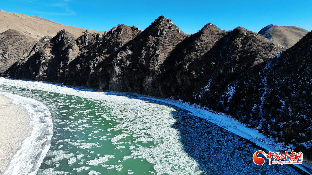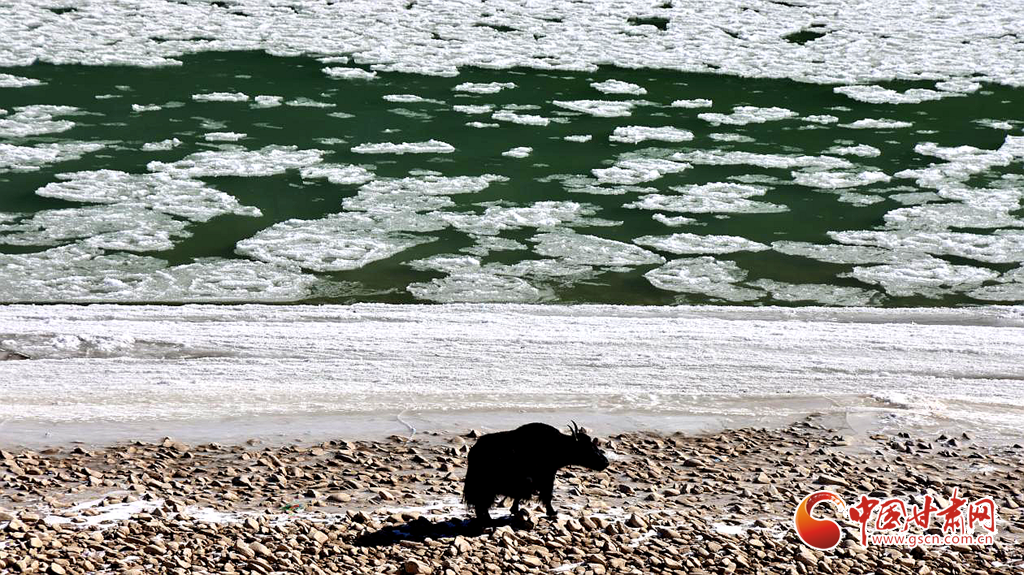 在黃河流經(jīng)甘肅的首站——瑪曲縣木西合鄉(xiāng)境內(nèi)的七仙女峰,此刻目睹黃河的壯麗風(fēng)光,流凌的出現(xiàn)為這幅天然畫卷增添了一抹濃重的色彩,晶瑩剔透的冰凌順流而下,互相碰撞,隨著河水浩浩蕩蕩蜿蜒向前,在陽(yáng)光的折射下,猶如珍珠瑪瑙般璀璨,鑲嵌在母親河的懷抱之中。