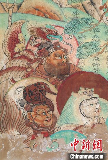 榆林窟第25窟北壁左側(cè)彌勒經(jīng)變之天龍八部。 (敦煌研究院 供圖)