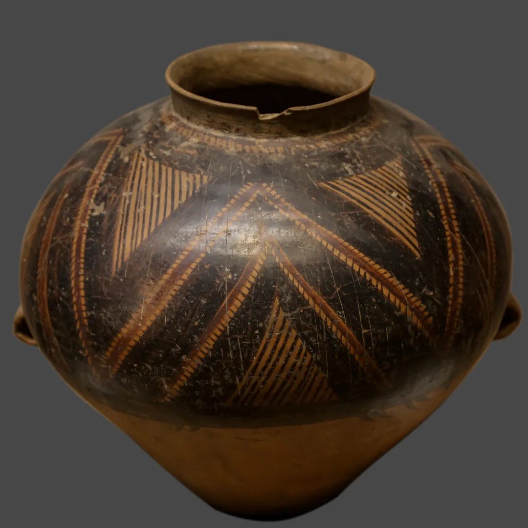 紋飾:黑彩與紅彩交替使用,常見鋸齒紋、葫蘆紋、四大圓圈紋、菱格紋等,圖案對稱且富有層次。