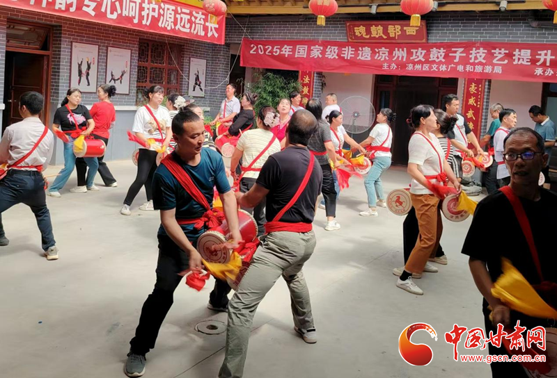 中國(guó)甘肅網(wǎng)7月19日訊(西北角·中國(guó)甘肅網(wǎng)記者 張振國(guó) 文/圖)為扎實(shí)推進(jìn)國(guó)家級(jí)非物質(zhì)文化遺產(chǎn)項(xiàng)目傳承與保護(hù),系統(tǒng)提升涼州攻鼓子團(tuán)隊(duì)專業(yè)水平,發(fā)展壯大攻鼓子傳承人隊(duì)伍。7月16日,由涼州區(qū)文體廣電和旅游局主辦、涼州區(qū)文化館承辦的2025年涼州攻鼓子傳承人技藝提升培訓(xùn)班分別在“涼州攻鼓子傳習(xí)所”和“四壩鎮(zhèn)非遺民俗文化館”開班。