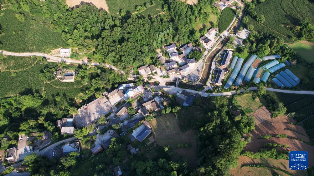 7月14日拍攝的青泥嶺腳下的青泥村(無人機照片)。新華社記者 陳斌 攝