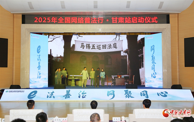 2025年“全國網(wǎng)絡(luò)普法行·甘肅站”活動啟動儀式上,原創(chuàng)網(wǎng)絡(luò)普法情景劇《法承初心》驚艷亮相,以獨(dú)特視角展現(xiàn)紅色法治文化與現(xiàn)代數(shù)字科技的交融碰撞,為觀眾帶來一場別開生面的法治盛宴。