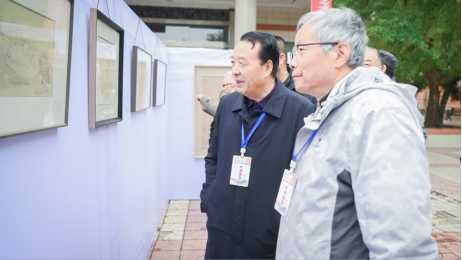 學(xué)校領(lǐng)導(dǎo)陪同畫家們觀展