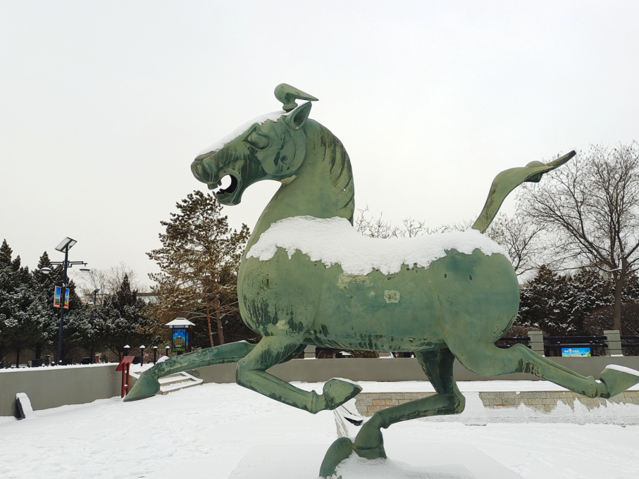 厚德載物的包容精神。特殊的地理環(huán)境,造就了涼州馬文化兼容并蓄、厚德載物的精神特質(zhì)。涼州大馬是中原馬、西域馬與蒙古馬雜交改良的產(chǎn)物,既保留了蒙古馬的耐力,又兼具西域馬的速度,這種“取長補短”的改良過程,本身就是包容精神的具體體現(xiàn)。“馬踏飛燕”作為東西方文化融合的藝術(shù)結(jié)晶,其形象既源于中原的“龍馬精神”,又吸納了西域“翼馬”的神話元素,成為兼容并蓄精神的具象化表達。它的鑄造工藝同樣展現(xiàn)出包容的特質(zhì),既采用了中原傳統(tǒng)的陶范鑄接法,又融入了西域藝術(shù)的浪漫主義風(fēng)格,寫實與想象完美結(jié)合,形成了形神兼?zhèn)?、氣韻生動的藝術(shù)效果。