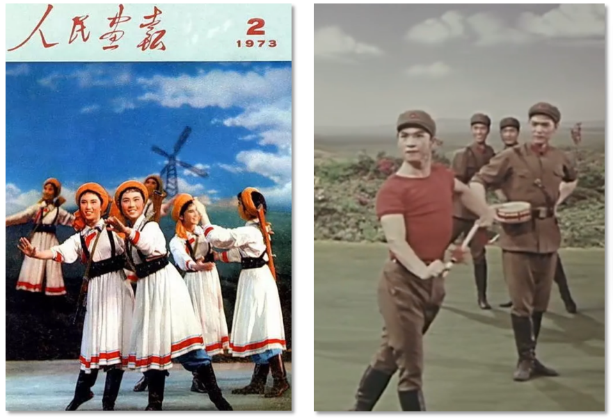 軍旅文藝作品在20世紀(jì)70年代迎來了創(chuàng)作高峰期,涌現(xiàn)了《草原女民兵》《戰(zhàn)馬嘶鳴》等一大批經(jīng)典作品,這與當(dāng)時特殊的歷史背景密切相關(guān)。“大約從70年代起,中國的舞蹈創(chuàng)作出現(xiàn)了一個稍稍活躍的狀態(tài)。為了歌頌新生活,也為了活躍舞臺,一些編導(dǎo)被先期‘解凍’,可以有限度地回到工作崗位上來。”人民軍隊與人民群眾需要通過文藝作品這一宣傳媒介,加強軍民一家親的情感聯(lián)結(jié),以此維護社會穩(wěn)定、軍民團結(jié)。
