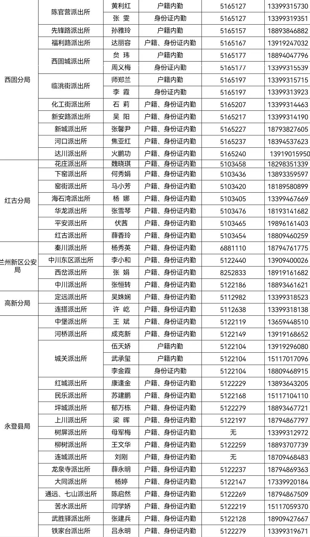 為切實(shí)滿足大量務(wù)工、經(jīng)商、就學(xué)人員陸續(xù)返鄉(xiāng)回家辦理戶籍、身份證業(yè)務(wù)的實(shí)際需要,今年春節(jié)期間(1月21日至27日),蘭州市公安局111個派出所戶籍窗口將為辦事群眾提供“網(wǎng)上辦理+預(yù)約服務(wù)”,有辦事需求的群眾請登錄“甘肅公安政務(wù)服務(wù)平臺”或撥打公布的電話提前預(yù)約辦理。