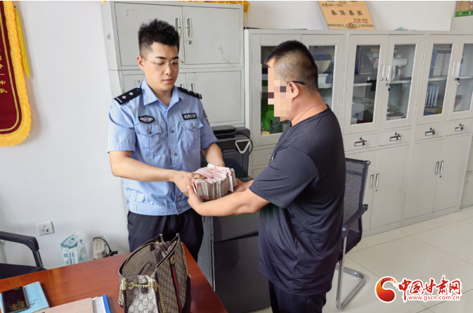 中國甘肅網(wǎng)7月20日訊(西北角·中國甘肅網(wǎng)記者 程?。┙眨焖懈使瓤h居民何某將一面印有“雷霆出擊 破案神速”的錦旗,送到甘谷縣公安局刑偵大隊民警手中,對民警為其挽回經(jīng)濟損失表達了感謝。