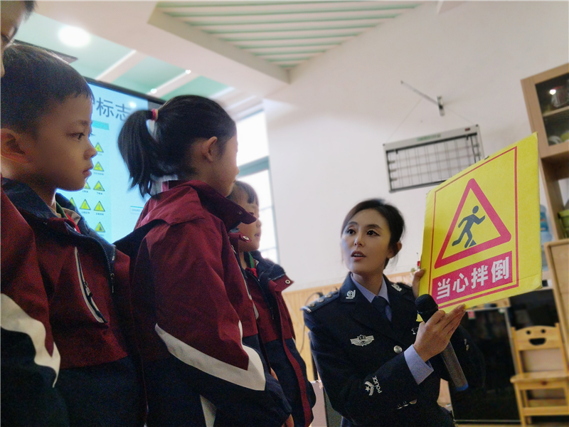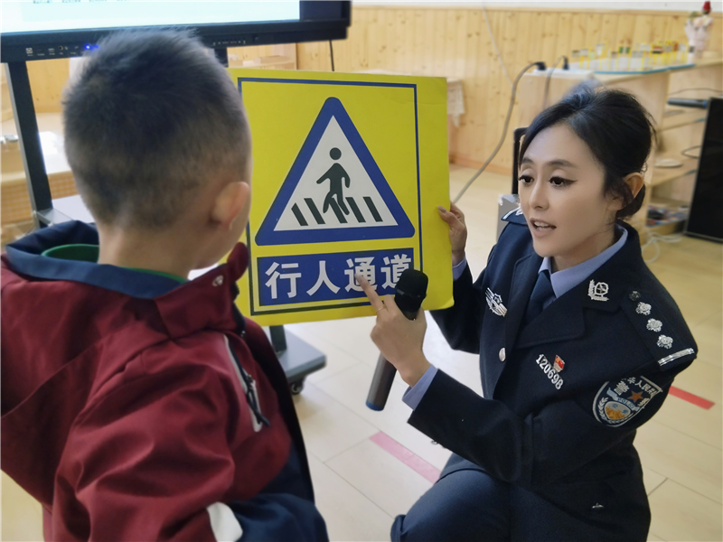 活動中,宣傳民輔警結合幼兒園小朋友年齡小、辨別能力有限的特點,以通俗易懂、生動有趣的語言,向小朋友們講解了在日常生活中“如何安全過馬路”“如何看懂信號燈”“乘坐交通工具的安全事項”等安全知識。結合實際情況重點宣講了“一盔一帶”的重要性,鼓勵小朋友把學到的交通安全知識傳遞給家人,希望通過“小手拉大手”的方式,提醒和監(jiān)督家長們在騎乘摩托車、電動車時正確佩戴安全頭盔。