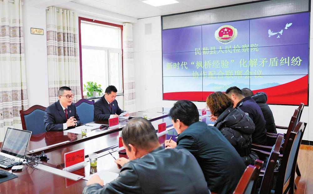 民勤縣檢察院召開(kāi)新時(shí)代“楓橋經(jīng)驗(yàn)”化解矛盾糾紛協(xié)作配合聯(lián)席會(huì)議,用心用力用情化解各類矛盾糾紛(2024年3月19日拍攝)。