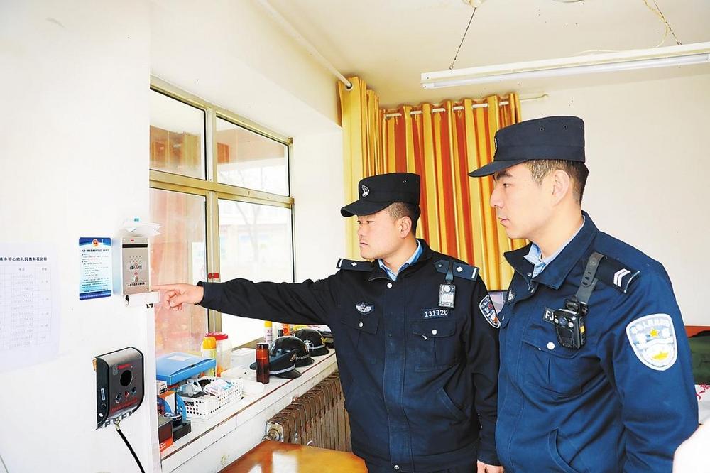 民警檢查學校安全設施。2月19日,平?jīng)鍪泄簿轴轻挤志执笄嘏沙鏊窬哌M大秦鄉(xiāng)中心小學檢查校園安防設施配備及安全通道,護航新學季。 新甘肅·甘肅法治報通訊員鄧博攝
