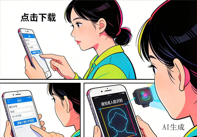 泄露信息:按要求輸入銀行卡號、密碼、短信驗證碼,并完成人臉識別。