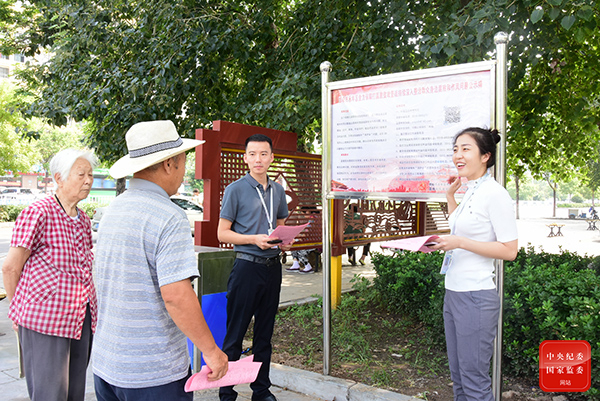 河北省邯鄲市永年區(qū)紀(jì)委監(jiān)委在村委會(huì)、醫(yī)院、公園等公眾場所懸掛公示牌,向群眾發(fā)放告知書,對(duì)群眾身邊腐敗和作風(fēng)問題整治內(nèi)容進(jìn)行現(xiàn)場講解,提高群眾知曉率。(河北省邯鄲市永年區(qū)紀(jì)委監(jiān)委 朱照坤 攝)