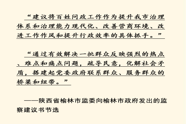 2019年12月6日,榆林市監(jiān)委制發(fā)的《關于解決百姓問政工作中存在問題的建議》的監(jiān)察建議書送達榆林市政府,并交于市長本人。