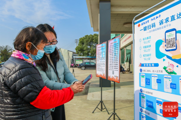 江蘇省張家港市紀(jì)委監(jiān)委聚焦做實監(jiān)督,創(chuàng)新信息化監(jiān)督平臺建設(shè),用“碼上監(jiān)督”推動監(jiān)督下沉、落地見效,維護(hù)群眾利益。圖為該市紀(jì)檢監(jiān)察干部在南豐鎮(zhèn)永聯(lián)村指導(dǎo)群眾掃碼使用基層廉勤監(jiān)督平臺。(江蘇省張家港市紀(jì)委監(jiān)委 供羅燕 攝)