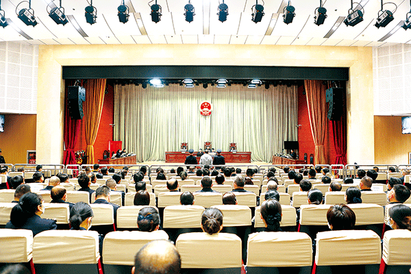 圖為4月21日,蘭州市中級(jí)人民法院開(kāi)庭審理柳豐德受賄、行賄案。 (蘭州市中級(jí)人民法院供圖)